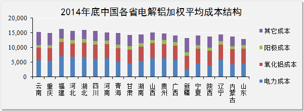 2014年我國(guó)電解鋁生產(chǎn)加權(quán)成本分析