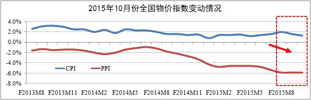 通貨緊縮壓力繼續增強。綜合分析物價指數,10月消費者價格指數(CPI)同比增長1.3%,環比下降了0.3個百分點;生產者價格指數(PPI)同比下降了5.9%,降幅較上月基本持平。與此同時,在全國流通領域50種重要生產資料中,11月上旬價格下跌的共31種,且集中在金屬及化工領域。以CPI和PPI為主的物價指數持續下行折射出我國面臨通貨緊縮的壓力持續增強。