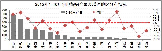 發稿時間:2015-12-09市場供給方面:產能方面,10月全國電解鋁建成產能約3800萬噸,運行產能3086萬噸,開工率為81.3%;產量方面,10月電解鋁產量259萬噸,同比增長9.8%,累計同比增長4.8%,其中:山東、新疆、內蒙、河南等省份全國產量占比65%。截至11月18日,電解鋁合計減產389萬噸,占國內總產能的10.3%,其影響效果將于2016年第二季度得到體現。