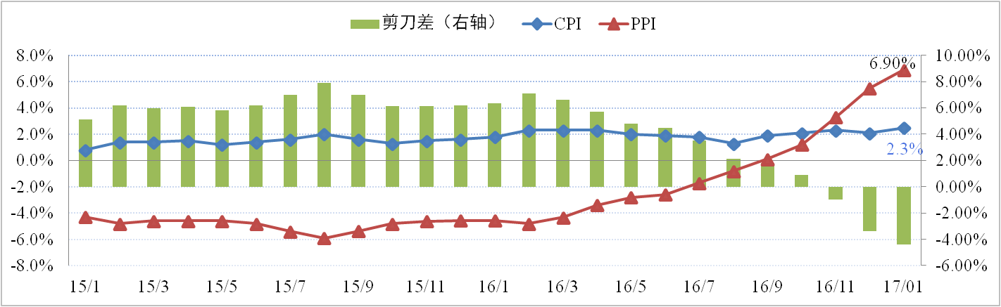 從兩會報告來看,積極的財政政策和穩(wěn)健中性的貨幣政策將貫穿整個2017年。1月份,CPI指數(shù)同比上漲2.5%;PPI指數(shù)同比上漲6.9%,疊加PMI數(shù)據(jù)和進出口數(shù)據(jù)均表明國內(nèi)經(jīng)濟平穩(wěn)勢頭仍在延續(xù);但多地方政府報告下調(diào)2017年GDP增速目標(biāo)顯示國內(nèi)經(jīng)濟依然面臨較大下行壓力。