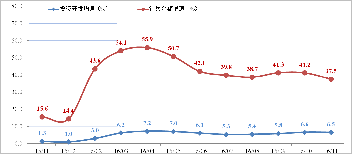 開發(fā)投資方面:2016年1-12月份,全國(guó)房地產(chǎn)開發(fā)投資同比增長(zhǎng)6.9%,增速環(huán)比增加0.4百分點(diǎn)。其中,住宅投資增長(zhǎng)6.4%,增速環(huán)比提高0.4個(gè)百分點(diǎn)。住宅投資占房地產(chǎn)開發(fā)投資的比重為67.0%。