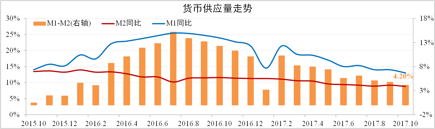 分析認(rèn)為:政府嚴(yán)查消費(fèi)貸、樓市降溫導(dǎo)致居民中長(zhǎng)貸放緩以及財(cái)政性存款超預(yù)期增加是M2再度放緩的主要原因。累積的財(cái)政存款將在11、12月大幅支出,預(yù)計(jì)11月M2小幅回升。