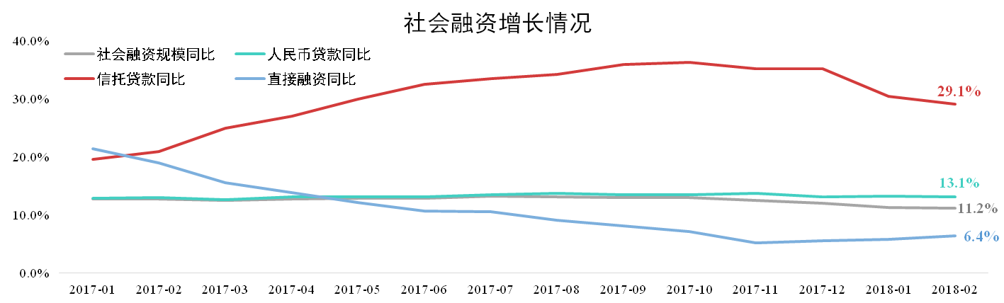 社會融資規模有所放緩。據人民銀行數據,2月份社會總融資規模同比增長11.2%,與上月持平。合并1-2月數據剔除春節因素影響較去年多增5407億元,表明實際信貸需求不弱。