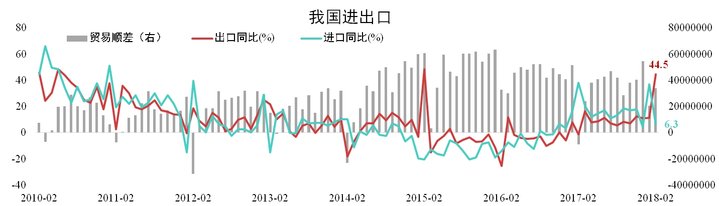 分析認為:2月進口增速大幅下滑,但1-2月總進口增速較去年同期僅下滑6個百分點,內需有轉弱跡象但仍需更多工業數據驗證。對美貿易順差的繼續擴大可能引發特朗普動用301條款,將會對海運費以及美元帶來明顯影響。