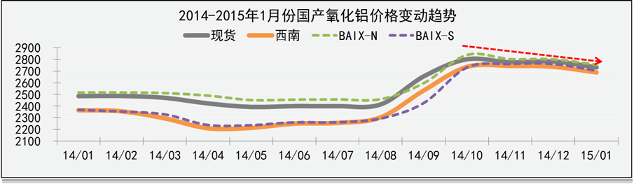 發稿時間:2015-01-242014年度我國氧化鋁市場價格總體表現為“先抑后揚”的發展趨勢,上半年市場整體延續了2013年度的弱勢,北方地區氧化鋁現貨價格最低滑落至2350元/噸,創造了近四年來的新低。第三季度氧化鋁現貨價格前期較為平穩,后期價格則出現急劇攀升的良好發展趨勢,促使氧化鋁市場價格短期內提升至近三年的高點。第四季度氧化鋁現貨價格又逐步呈現回落趨勢,并于2014年底基本企穩。整體上看,2014年度氧化鋁國產現貨加權價格為2544元/噸,同比上漲1.4%,西南地區均價為2420元/噸,同比上漲2.1%。